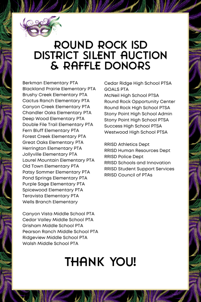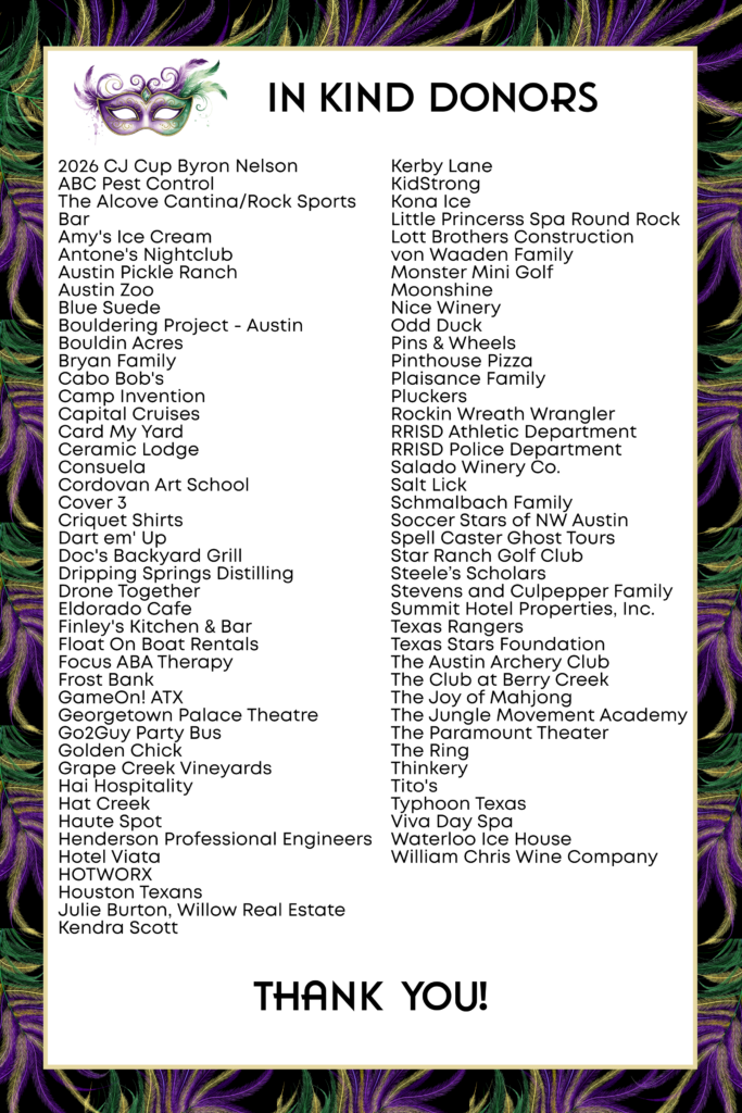 The Shining Stars Gala our largest and most important fundraiser of the year! Hundreds of community and corporate leaders from around the Round Rock & Austin area will join to support Excellence in Education for Round Rock ISD students, teachers, and staff. All funds raised will directly support Round Rock ISD Partners in Education Foundation’s mission.